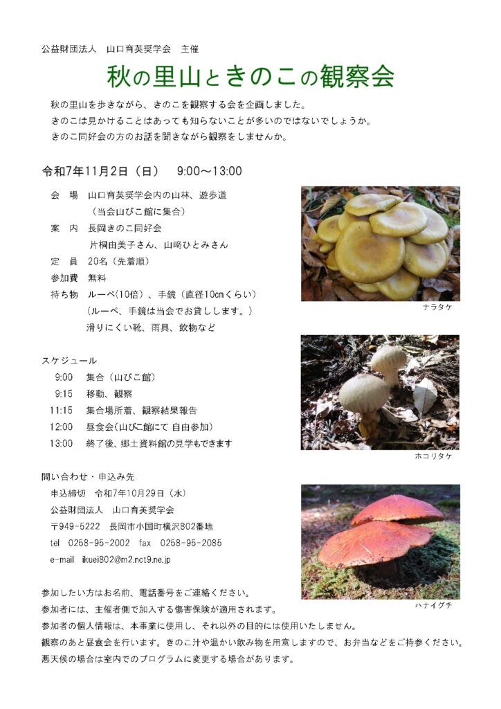 秋の里山を歩きながら、きのこを観察する会を企画しました。